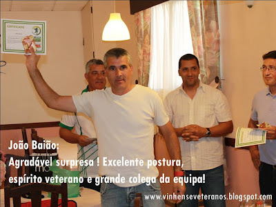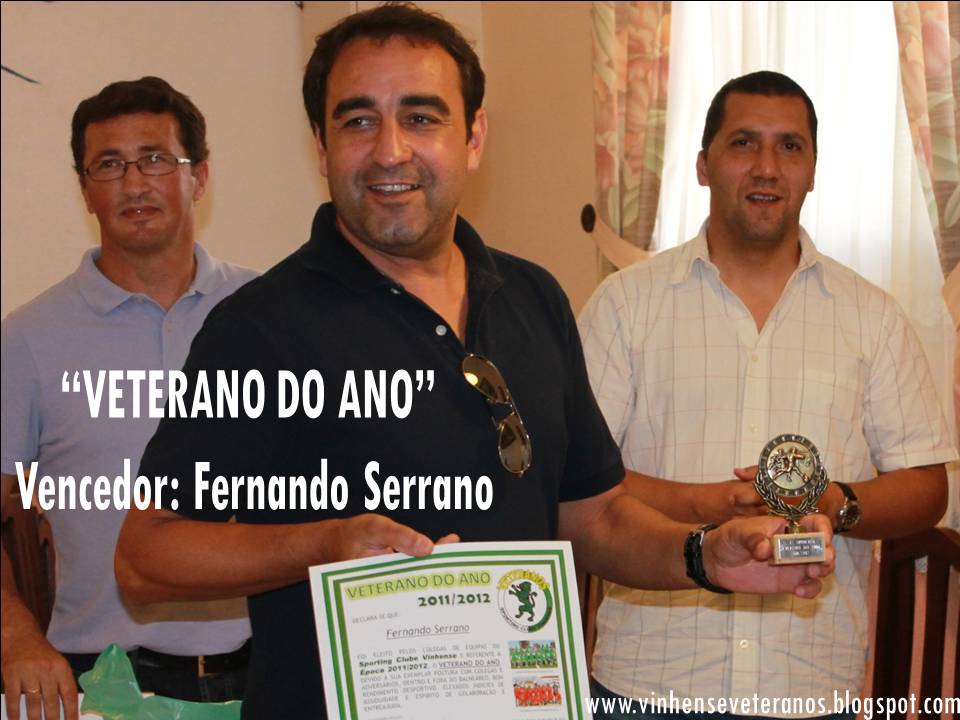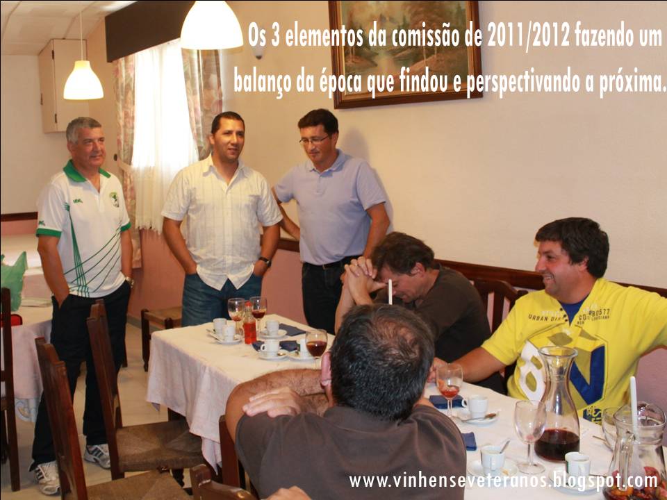 No principio de Julho, a equipa de veteranos do S.C.Vinhense realizou um almoço/convívio onde, para além da despedida da época 2011/2012, do balanço geral da mesma e das perspectivas para a próxima, foram também entregues alguns prémios que acima de tudo visam reforçar os laços de camaradagem e espírito veteranos entre todos os elementos do plantel, assim como "premiar", alguns daqueles que de alguma forma, foram importantes para o desenrolar da época, não só na componente desportiva, mas também e principalmente, pela disponibilidade, pela colaboração, pela assiduidade, pela assertividade, pela camaradagem,etc, demonstrada ao longo do últimos 10 meses.