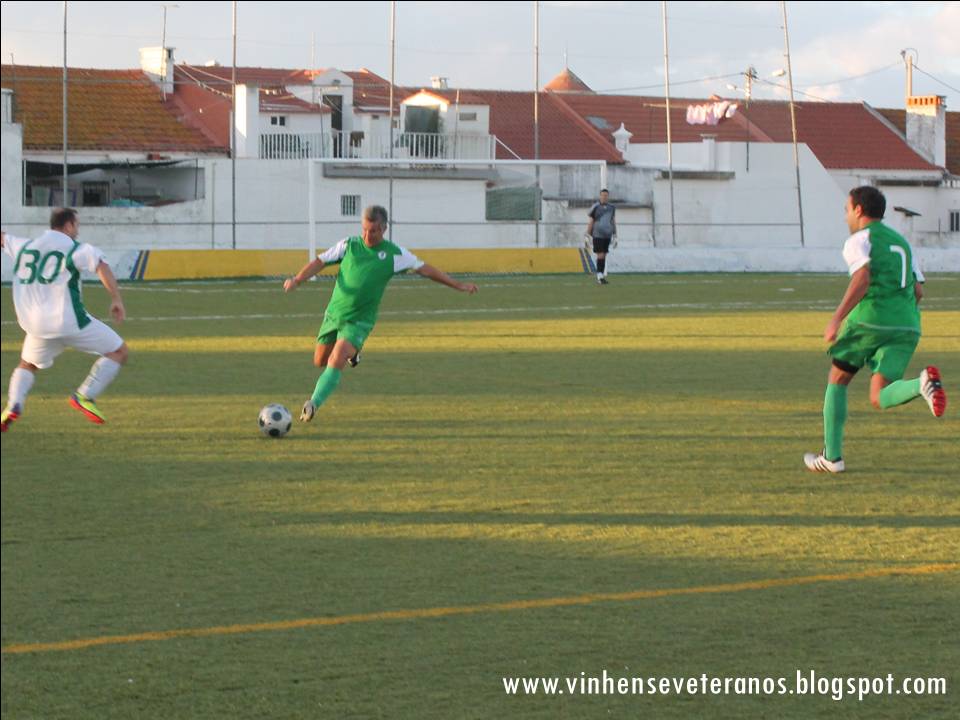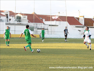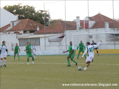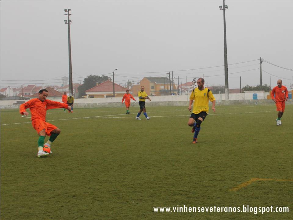 No passado sábado, recebemos a equipa dos Pescadores da Costa da Caparica, numa tarde com céu aberto, mas muito vento. As equipas entraram em campo tentando controlar o jogo, com a bola a rondar as duas balizas, mas com a equipa do Vinhense a criar mais perigo, e quase a marcar por duas vezes, com Rui Branco primeiro e Paulo Amaral logo depois a fazerem a bola passar muito perto da baliza da equipa dos Pescadores da Costa. A nossa equipa trocava bem a bola e demonstrava grande acerto e segurança no sector mais recuado resolvendo quase todos os lances de ataque adversário e ajudando a que Bruno Campos tivesse um jogo sem grandes intervenções. O meio campo trocava bem a bola e a ala direita era a mais ofensiva, com Chico Matos a ajudar imenso nos lances ofensivos. A bola rondava a baliza da equipa da Costa da Caparica, e, a meio da 1ª parte, a nossa equipa chegou á vantagem, por intermédio de Paulo Amaral, numa boa jogada individual, a fintar dois adversários e já dentro da área, a colocar a bola no poste mais distante, não dando hipótese de defesa ao guarda redes contrário. Até ao intervalo o jogo não sofreu alterações, com a equipa da casa a ir para o descanso em vantagem, embora magra.