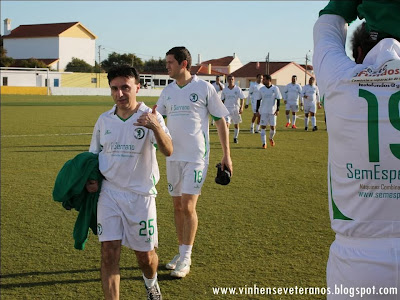Sábado passado tivemos a tão esperada recepção à equipa de veteranos do Sporting Clube de Portugal, numa tarde agradável e mais uma vez com a equipa praticamente toda presente á excepção de Paulo Amaral. O nosso Mister armou a sua táctica da forma que achou mais adequada para tentar fazer frente à equipa adversária. Desde o primeiro minuto, e até fruto de uma maior experiência de alguns jogadores, a equipa do Sporting mostrou-se mais forte e organizada que a nossa mas tal não impediu que tentássemos fazer o nosso jogo e tentar chegar com perigo á área adversária. O primeiro golo para os visitantes surgiu a meio da 1ª parte, na conversão de uma grande penalidade cometida (ou não) por Chico Silva. Valeu a chegada do Pauleta e do Carlos Ascenção que taparam a visão do Zé Almeida no banco, senão ninguém sabe quais seriam as consequências. A equipa não baixou os braços e por duas ocasiões chegou com perigo á baliza adversária, desperdiçando boas oportunidades de golo. Quem não marca sofre e foi o que aconteceu num remate de fora da área, sem oportunidade de defesa para Zé Luís. Ao intervalo vantagem para a equipa do Sporting por 0-2.