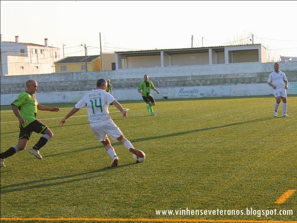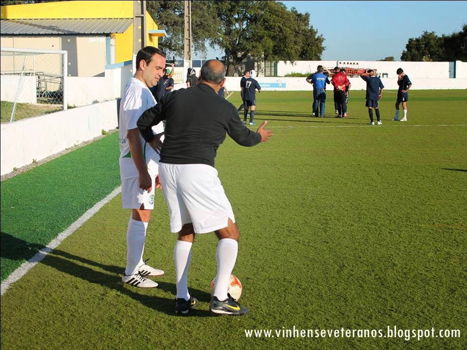 Com um clima verdadeiramente de Verão e a convidar a um bom jogo de futebol, recebemos sábado passado no campo da Madalena a equipa de veteranos de Montargil, uma equipa que nos proporciona sempre jogos bem disputados e renhidos, quase sempre com resultados difíceis de prever. Com a equipa reforçada com as presenças de Ricardo Futre, Vitinha e João Oliveira no banco e Zé de Almeida e Vitor Santos no bar. O competentíssimo Mister Babló, puxou de todo o seu profissionalismo, e apareceu com a lição bem estudada. Escolheu o seu 11 inicial, só esses jogadores fizeram o aquecimento inicial, colocou as pedras nas devidas posições e até explicou a cada um o que esperava durante o jogo, com palavras de incentivo. Ok, não foi exatamente assim, mas um dia será!!!! Digo eu.... No filme da sua cabeça só passava "VITÓRIA" e ninguém teve coragem de o contrariar, nem mesmo "aqueles" distraídos que tentam transformar os seus empates em derrotas. A nossa equipa entrou muito bem no jogo, a jogar simples e a trocar bem a bola. Como resultado disso, domínio quase absoluto do jogo, com a equipa de Montargil a sentir muitas dificuldades em entrar no nosso meio campo e parar os nossos lances ofensivos. A espaços a equipa adversária foi-se abeirando da nossa área e embora a iniciativa de jogo fosse nossa, foi deles o primeiro remate com algum perigo. Nada que nos fizesse tremer . Á passagem do 1º quarto de hora, e depois de duas ou três ocasiões para abrir o marcador, acabámos por chegar á vantagem por intermédio do suspeito do costume, Rui Branco, a concluir uma jogada rápida pela direita do nosso ataque. O jogo continuou com o mesmo sentido e perto da meia hora de jogo um lance de laboratório treinado até á exaustão durante a semana, valeu-nos o 2º golo, por intermédio do Luís Peguinho. Ao intervalo, vantagem por duas bolas com alguma justiça.