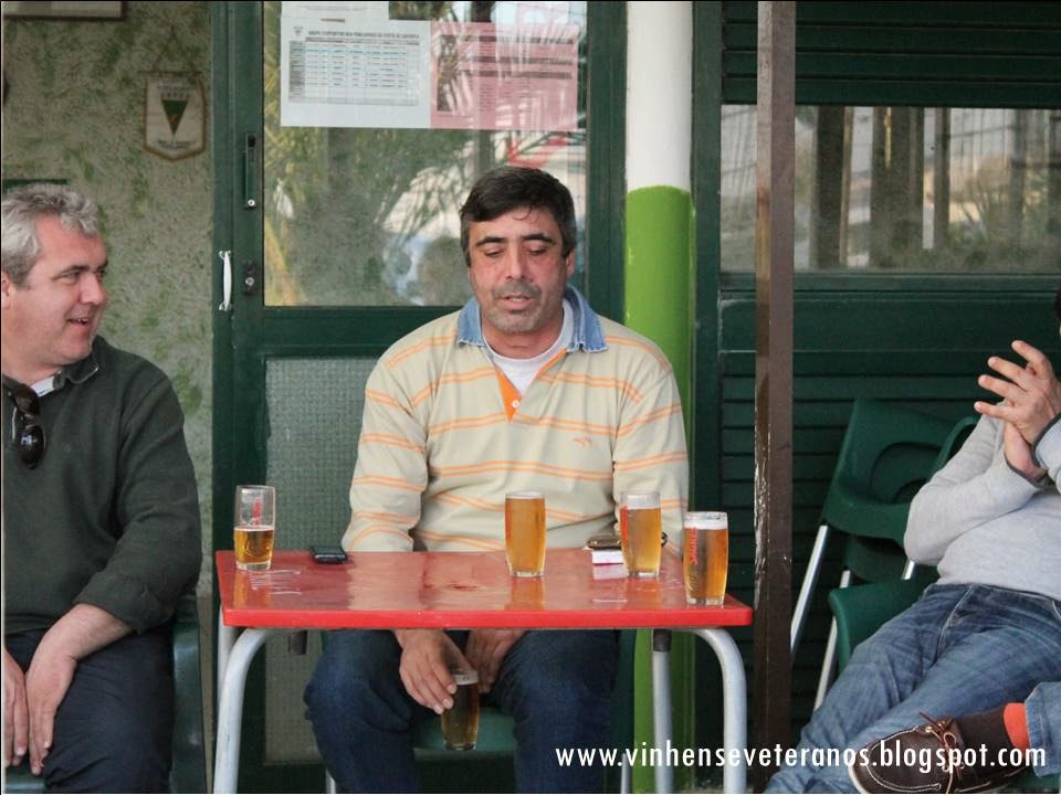 tudo e entrou ele próprio para resolver. Fez bem, pois assim que acabou o jogo resolveu ir tomar banho para não se constipar. Mesmo ao cair do pano e quando "alguns " já tomavam banho, beneficiámos de uma grande penalidade convertida com sucesso por Bruno Lopes, provocando algum mau estar em alguns jogadores adversários. No final empate por 3 - 3, mas uma boa imagem deixada em campo e apesar de algumas picardias e alguns lances escusados, foi um bom jogo de futebol, equilibrado e bem disputado. . Quanto ao