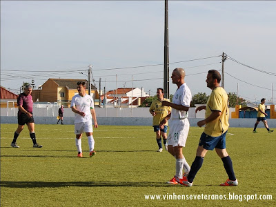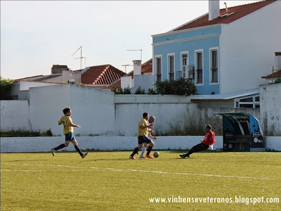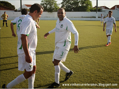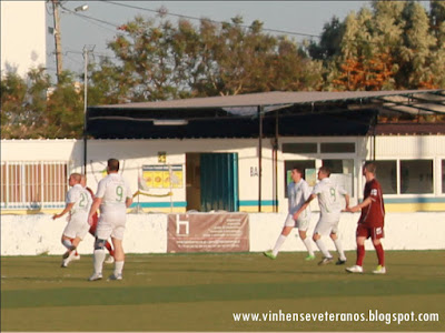Realizámos sábado passado o 1º jogo desta época desportiva, com uma deslocação a Corroios para defrontar os Veteranos do Atlético de Vale de Milhaços. Para alegria do Mister o balneário estava cheio, salientando a estreia do João Vaz e logo como titular (também deve morar no bairro das Palmeiras) e os regressos de Rui Bancaleiro, Zé Almeida, Chico Pires, Vítor Santos e Bruno Campos. O Vítor quase que regressava aos relvados mas a dureza do jogo obrigou a muita precaução. Já o Bruno Campos lesionou-se no aquecimento e já não pôde dar o seu contributo. desejamos as rápidas melhoras.